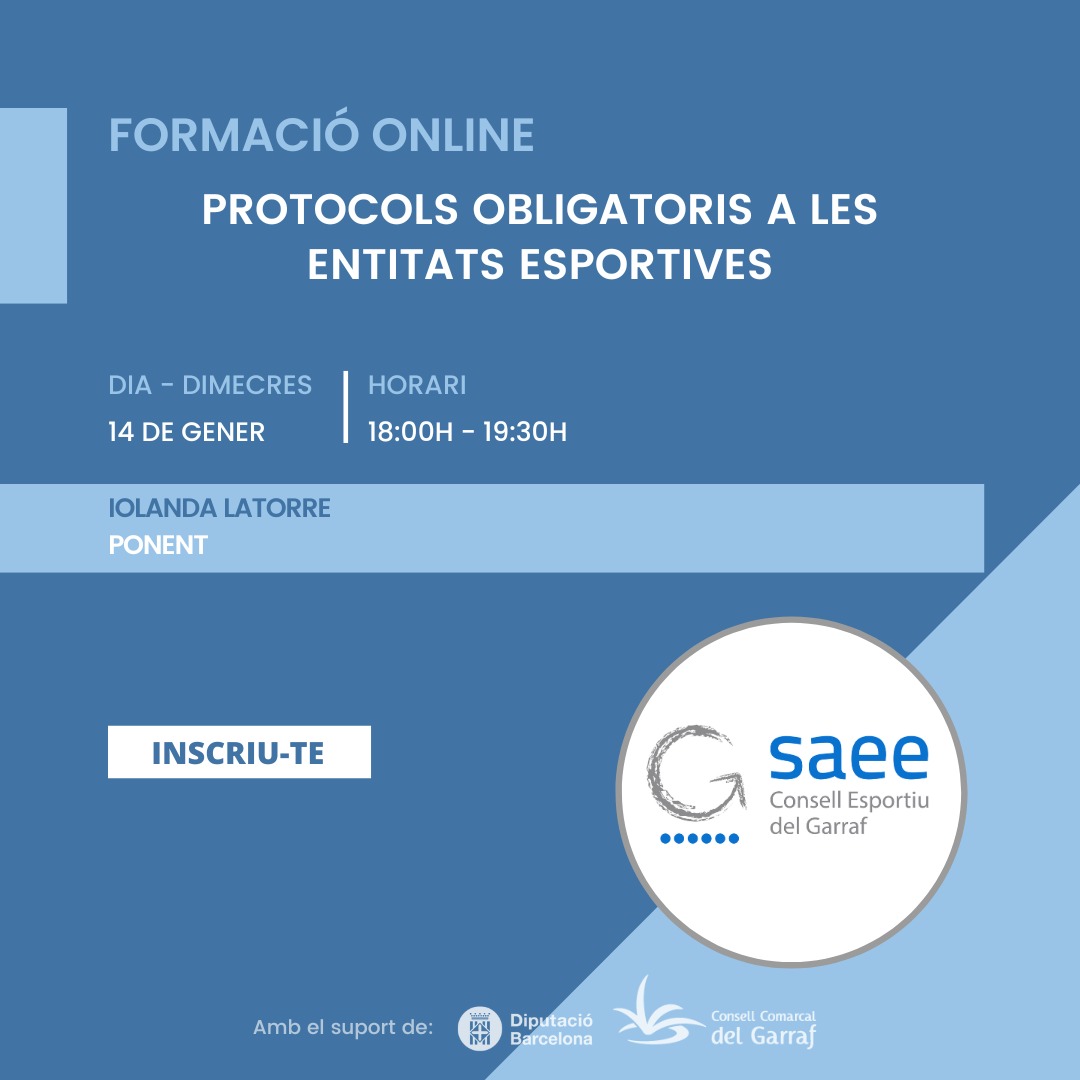 Us recordem que el SAEE, el SERVEI GRATUÏT d’assessorament i formació per a les entitats esportives del Garraf, resta a la vostra disposició per a qualsevol consulta relacionada amb aquesta convocatòria.