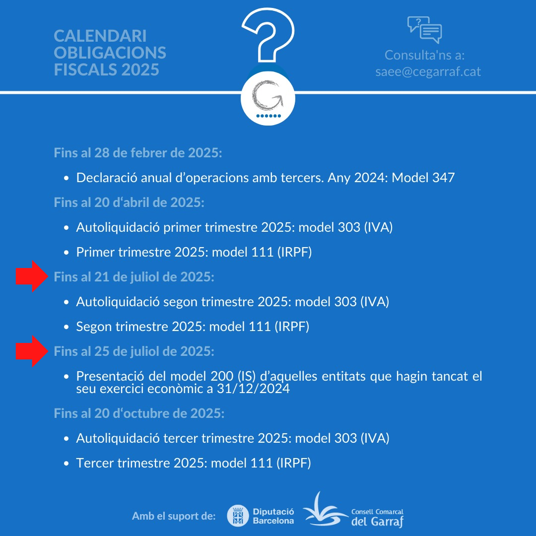 CALENDARI D’OBLIGACIONS FISCALS JULIOL 2025