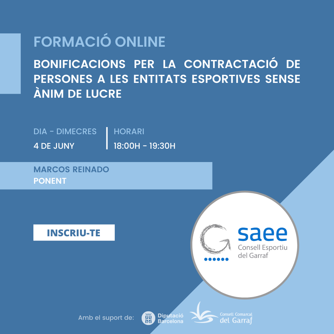 Us recordem que el SAEE, el SERVEI GRATUÏT d’assessorament i formació per a les entitats esportives del Garraf, resta  a la vostra disposició per a qualsevol consulta relacionada amb aquesta convocatòria.
